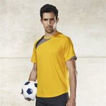 Quick drying fabric. Contrast panels. Matching cover stitch finishing. Twin needle finishing.
