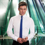 Easy-to-iron, cotton rich, slim fit shirt. Effortlessly stylish, twin rear darts for a defined silhouette. Semi cutaway collar looks fantastic with or without a tie! Long sleeve, white only.