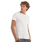 Short-sleeved T-shirt. Crew neck collar in 1x1 Slub yarn rib. Side seams. Neck-tape in self-fabric. Bar taking (Folded hem attached with 3 bartacks). Blind stitch on hem.