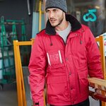 PVC coated 100% polyester ripstop outer. Polyester padding and lining inside. Fleece lined back and inner collar. Full front zip with studded flap. Detachable sleeves. 5 functional front pockets including one for badge holder. 1 inner pocket. Reflective trims on chest and back. Reinforcing shoulder panels. Side zip opening for ease of movement. Ajdustable drawcord at waist. Concealed hood. Zip access for decoration at chest and hem.
