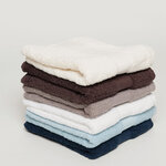 100% Egyptian cotton loop and pile. Extra soft and luxurious pile with excellent absorbancy. Smooth and modern twill border. Size: 50 x 90 cm