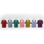 Update on classic vertical striped Jersey. New lightweight fast dry fabric. Traditional v-neck collar with contrast insert and taped neck seam. Flock Lotto logos and contrast cuffs on each sleeve. Plain panel on back for name and number prints. Also avail