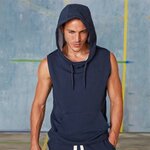 Low shrinkage French terry. Kangaroo pocket. Funnel neck. Lined contrast hood with drawcord. Raw edge shoulder yokes. Side panels with matching cover stitch. Triple needle finishing.