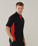 Contrast side panels, piping on sleeve. Side vents with contrast taping, taped neck. Contrast inner placket, three button placket. Also available in kids'