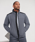 3 layer softshell fabric with 4 way stretch, waterproof (to 5000mm), breathable (5000g/m2 per 24 hrs) and with durable water resistant DuPont™ Teflon® coating. Ergonomic fit with articulated elbows. One piece shoulder panel, no shoulder seam. Black contrast panels on shoulders, elbows and back of hem. Sturdy YKK vislon front zip with pull cord. 2 deep, zipped front pockets. 1 multi compartment pocket. Cuffs with internal stretch insert for weather protection and comfortable fit. Adjustable bungee cord in hem.
